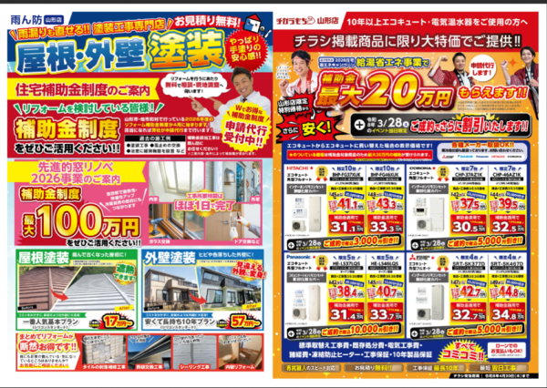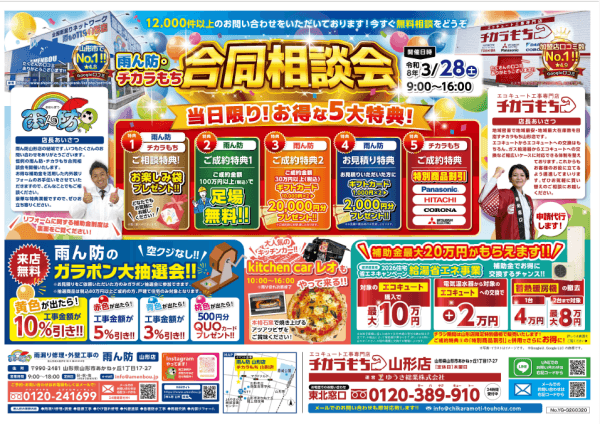 3月28日㈯ 雨ん防山形店・チカラもちで合同相談会を開催いたします!