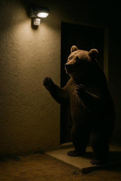 熊は光や音に敏感なので、人感センサー付き防犯灯を設置すれば、びっくりして逃げてしまうかもしれません。