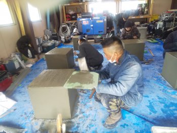 塗装、防水、左官と技術を磨くため皆さんお勉強です