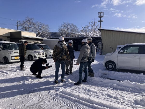 まずは職人さんの朝礼風景を撮りたいとのことで