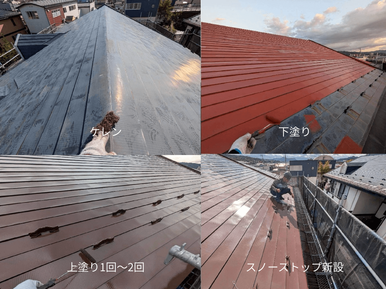 ケレン→下塗り→上塗り1回~2回→スノーストップ新設と進めます!