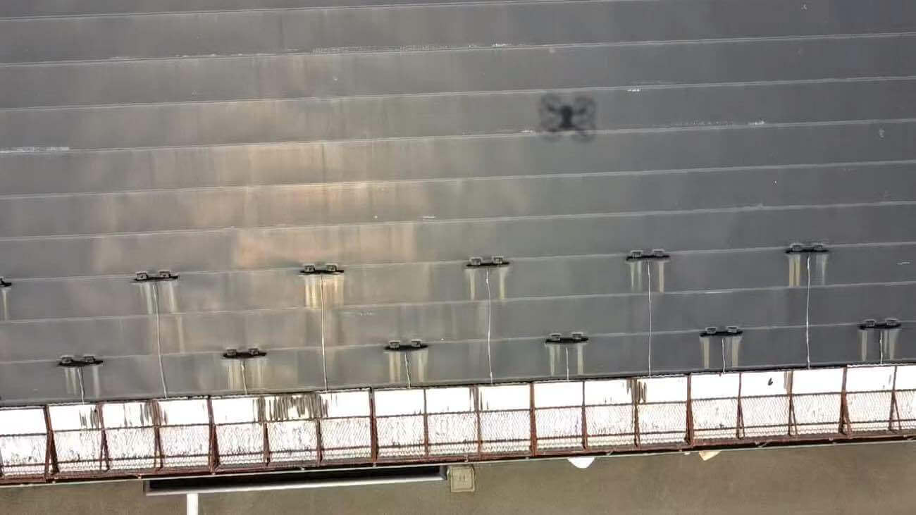 ドローンで屋根の状態を確認したところ、艶がなく、全体的に退色している状態でした。