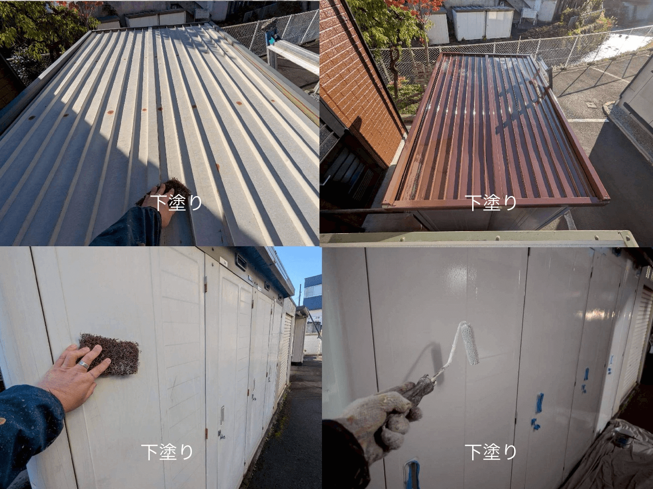 続いて物置は下塗り→上塗りと進めます。