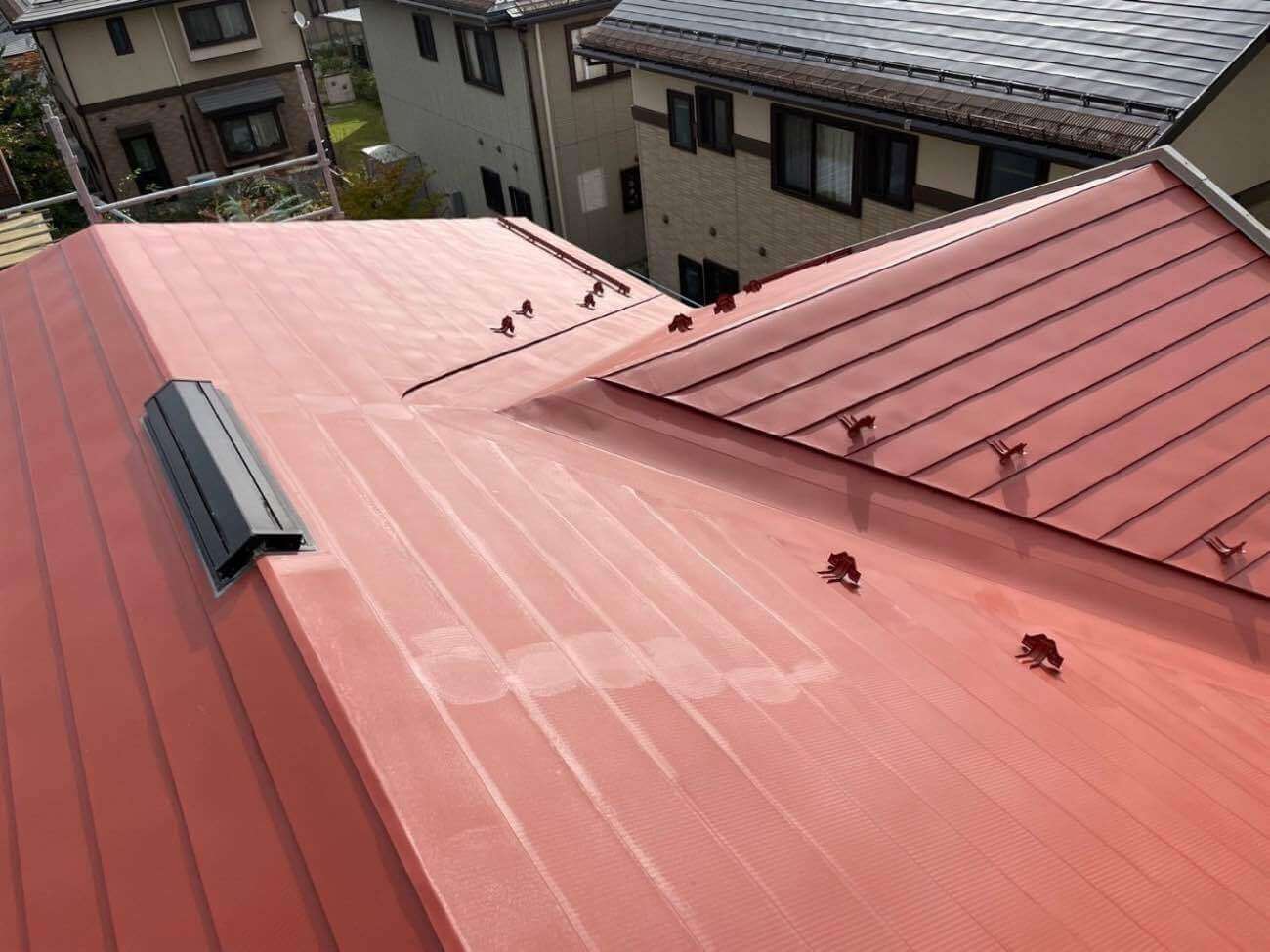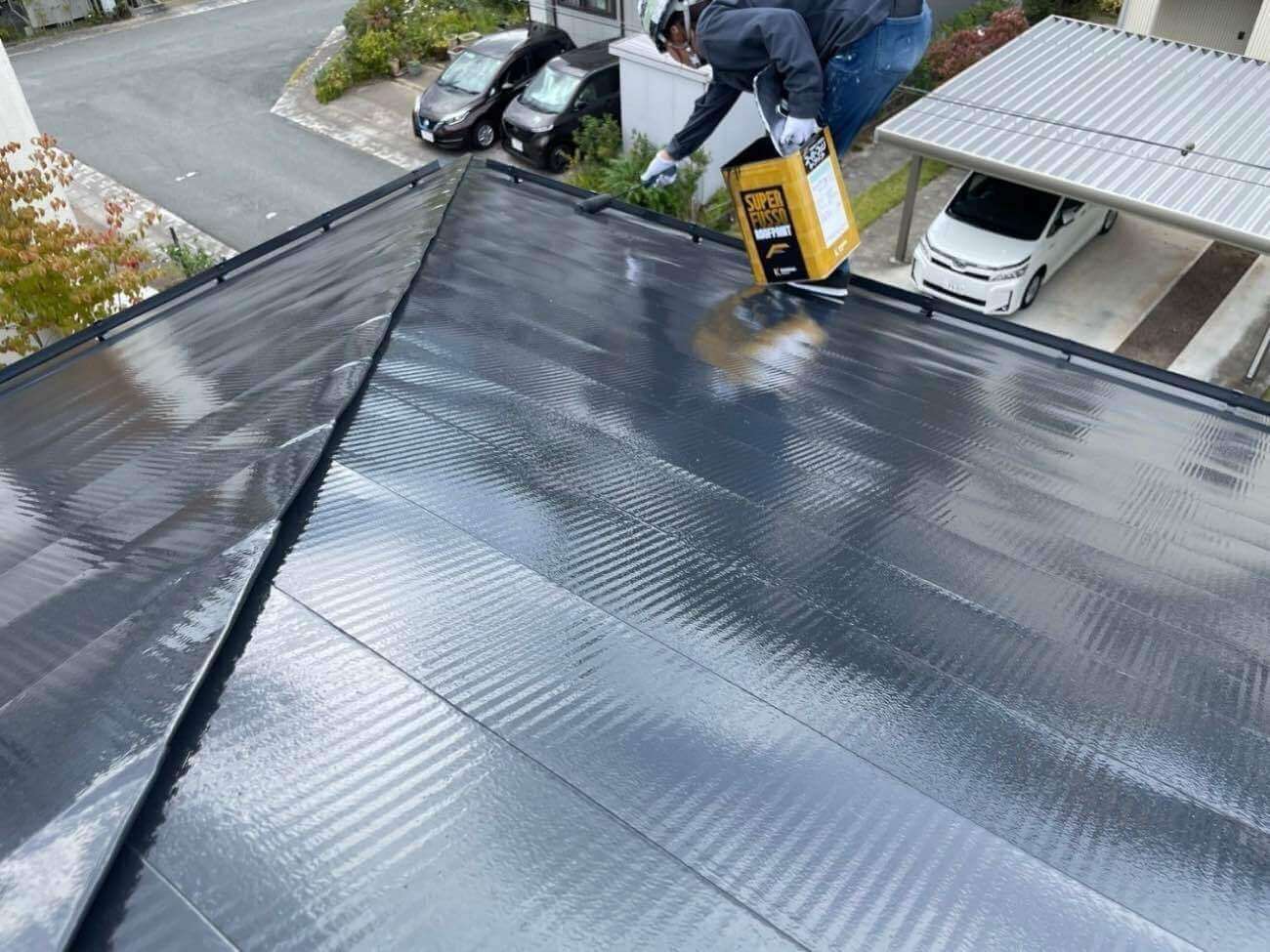 フッ素樹脂を用いた屋根塗装は、その優れた耐久性・耐候性により、長期間にわたって屋根の美観と機能を保つことができます。初期費用は高額ですが、塗り替えの頻度が減るため、長い目で見るとトータルコストを抑えることができ 、紫外線や風雨にさらされやすい屋根の塗装に適しています。