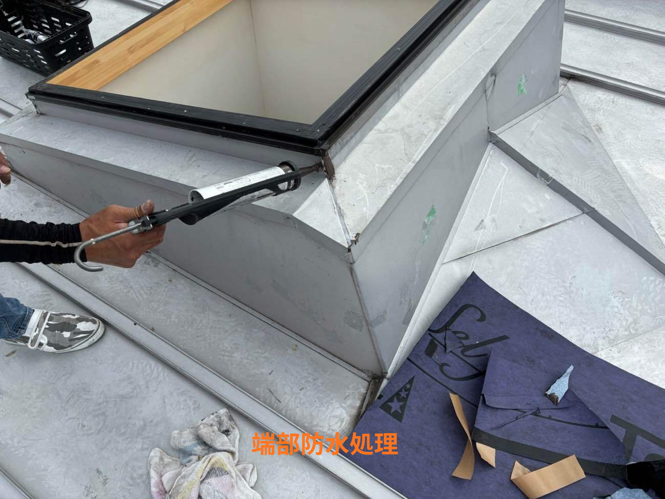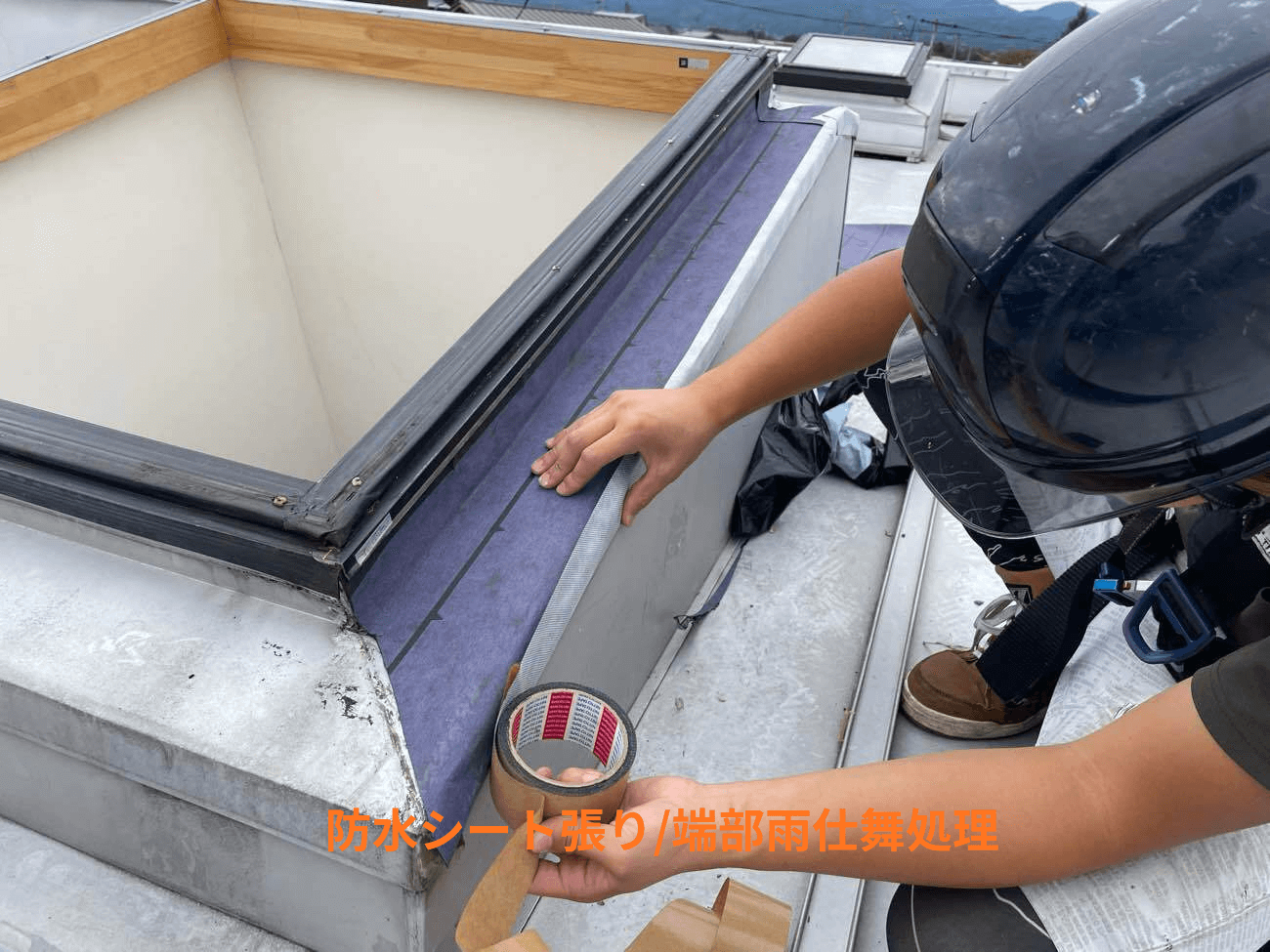 続いて、端部防水処理→トップライト廻り防水処理と進めて行きます!
