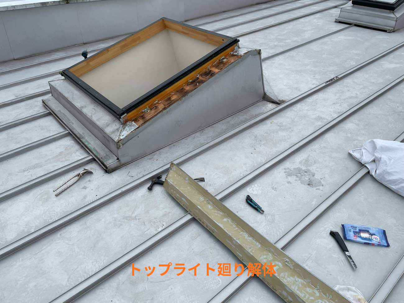先ずは、既存のトップライトを解体します。その後トップライト廻りも解体していきます!