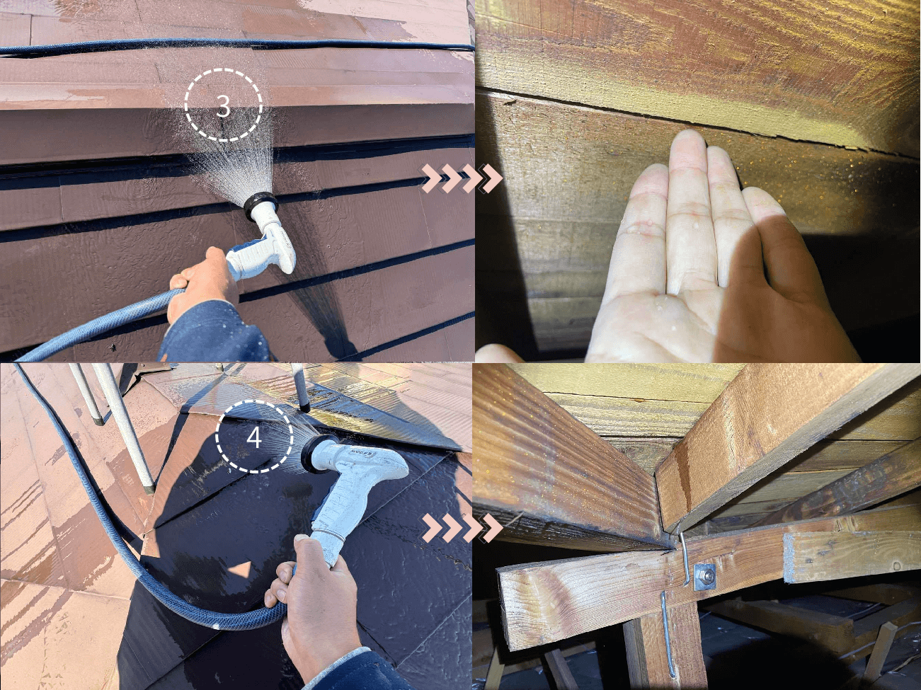◆雨漏り調査・・・散水箇所③~④へと進めて行きます。