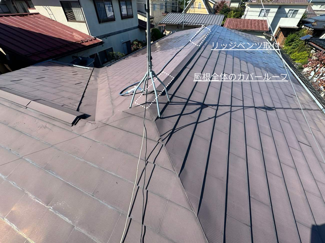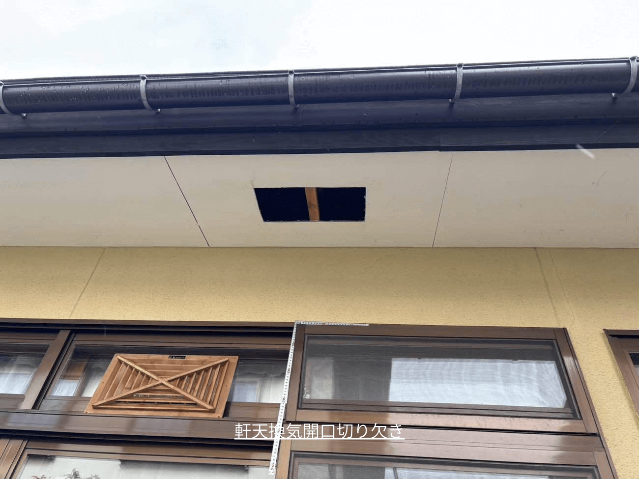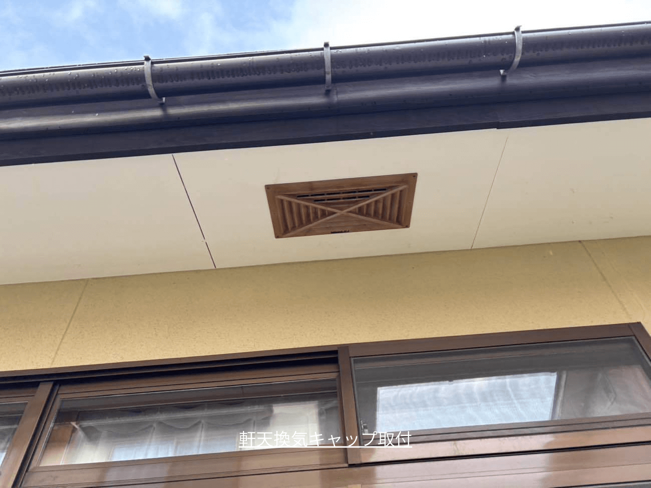 また、建物全体に湿気が滞留している為、棟換気2カ所(リッジベンツ)の取付、及び軒天の換気口も新たに8か所取付を行い、外部の空気をうまく取り入れ、湿気や熱気を効率的に屋外へ排出する仕組みを作り、木材の腐食、カビの原因、家の寿命を縮める大きな要因を改善していきます。