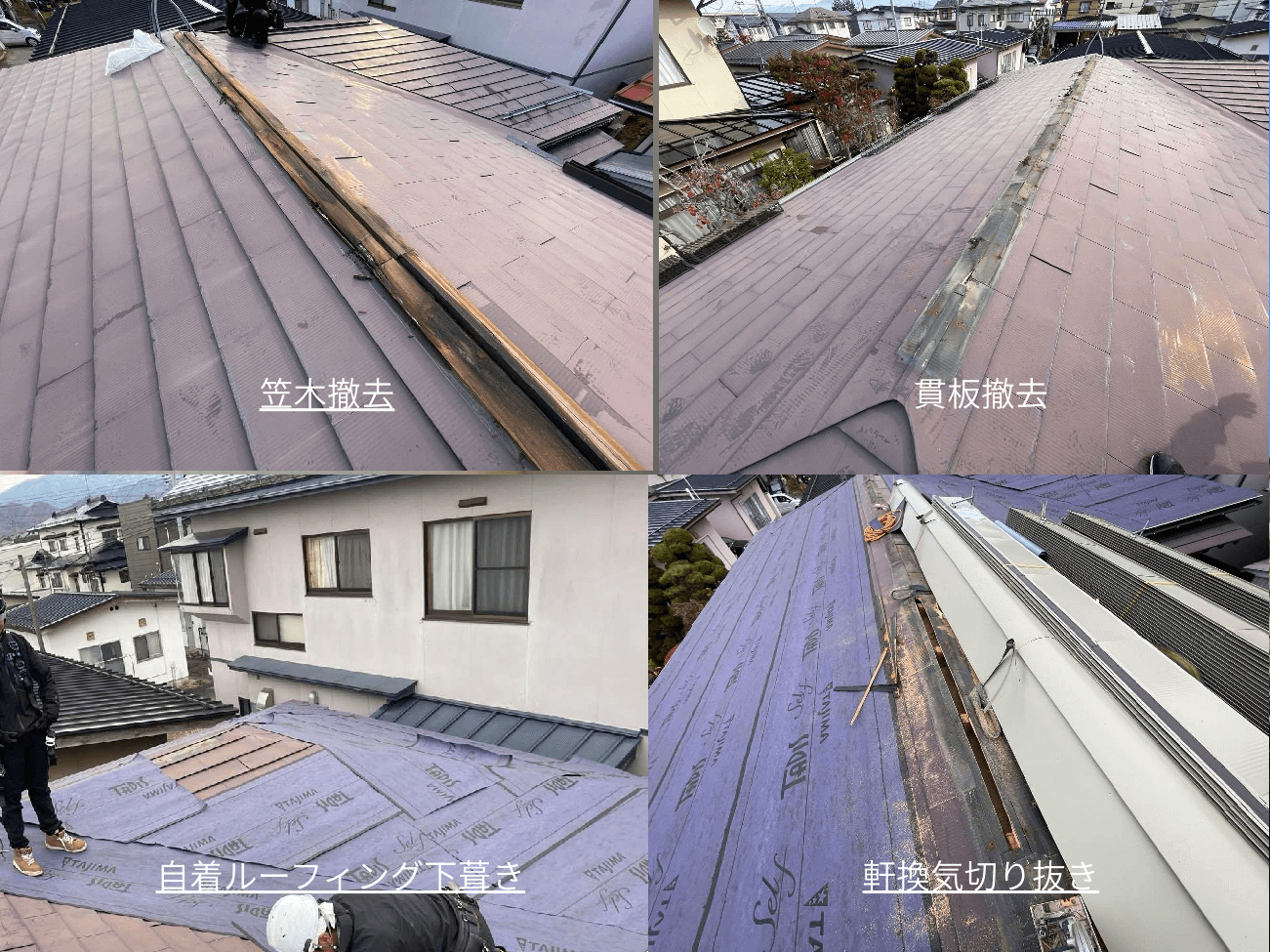 屋根カバールーフ・・・笠木撤去~貫板撤去~自着ルーフィング下葺き~軒換気切り抜き
