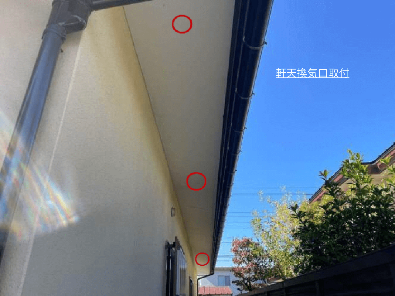 軒天換気口取付・・・・8カ所に軒天換気キャップの取り付け