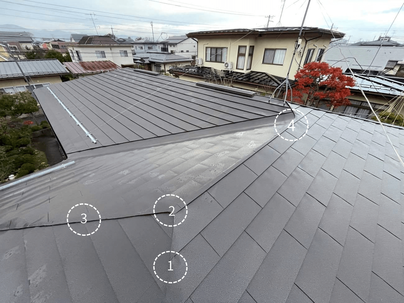 屋根はサビもほぼなく、状態は良好でしたが、寄棟と呼ばれる形状のこの屋根は、写真の三角部分で良く雨漏りが発生します。