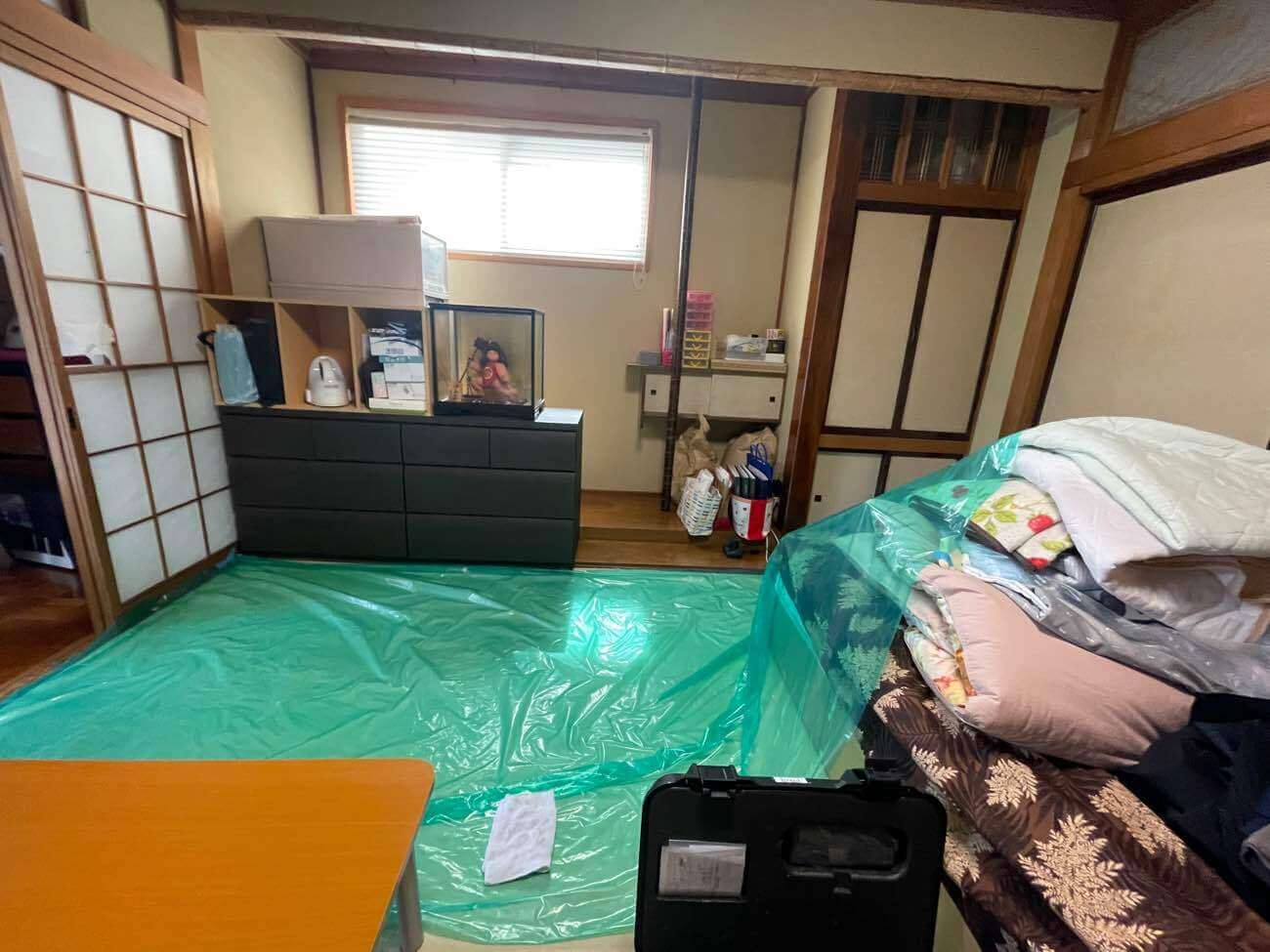 室内はビニールで予め養生を行い準備を整えます。
