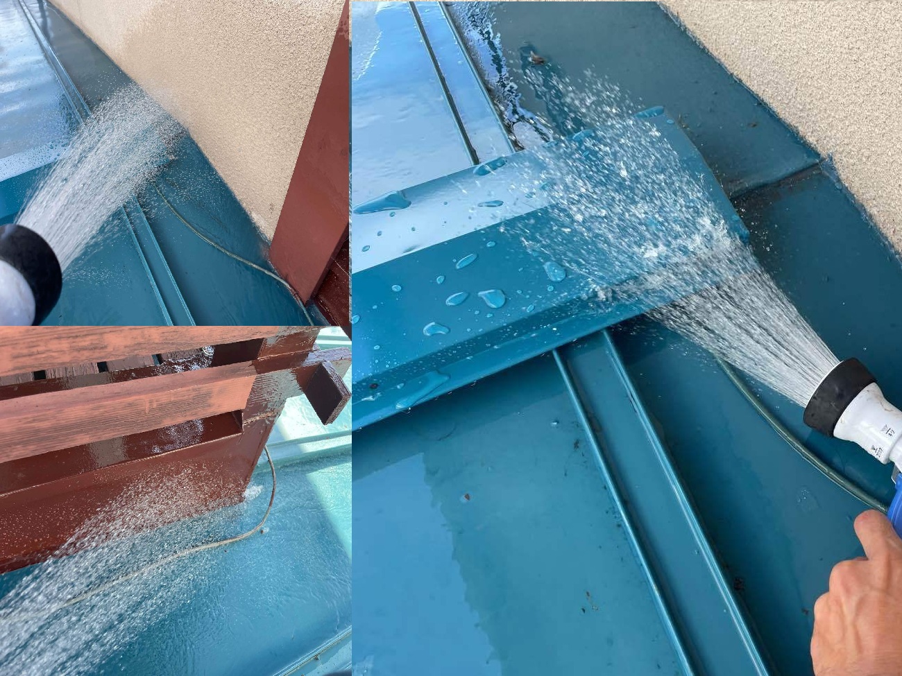 最後に漏れがないか再度、散水をし完了です。