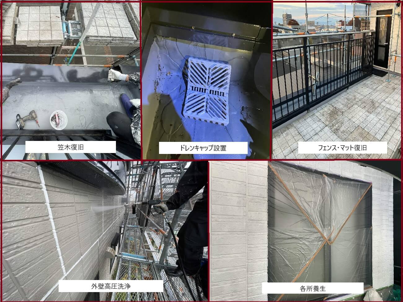 笠木、ドレンキャップ、フェンスマットも元通りに復旧しました。