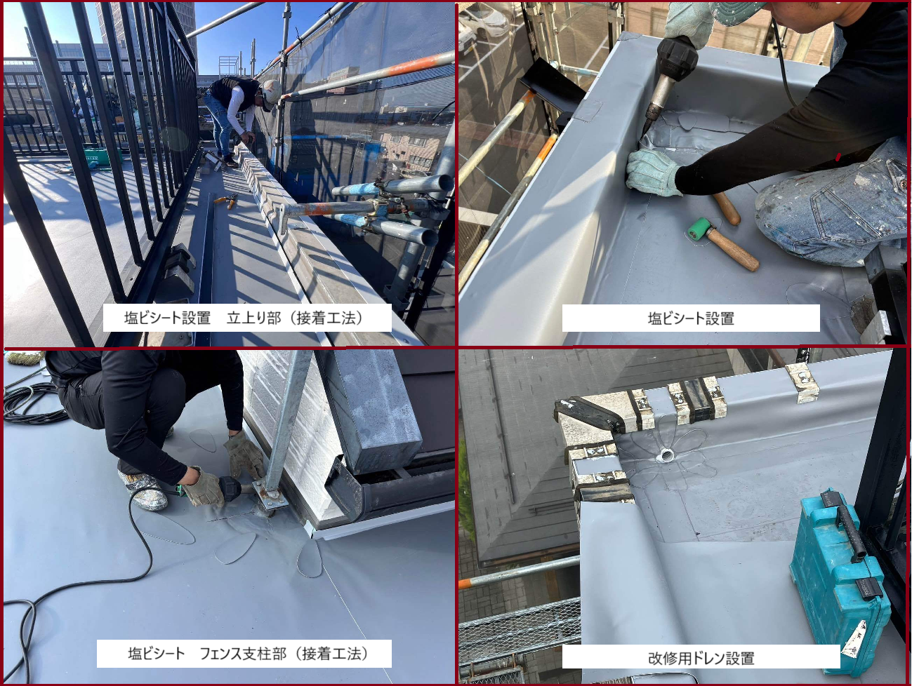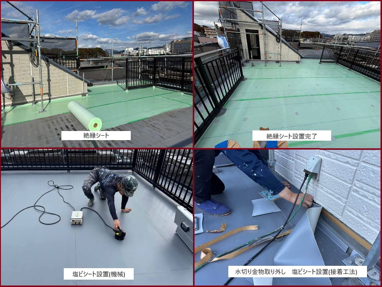 シーリングの充填が完了したら次はこの工事の難関の屋上防水工事に入ります。