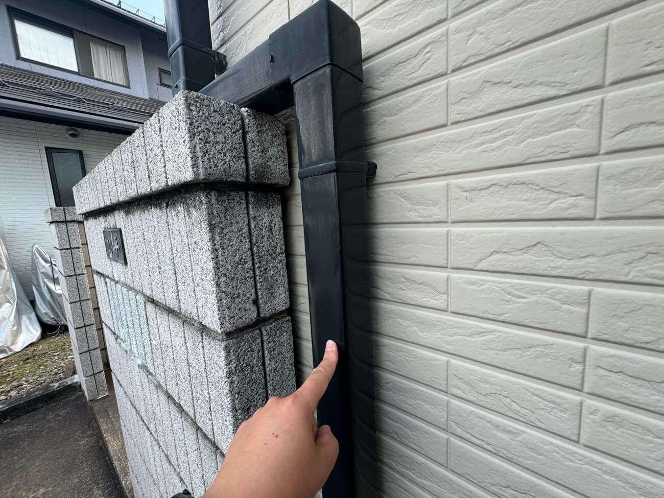 雨樋は軒樋、竪樋共に汚れが出ており、足場を組んだタイミングで、劣化防止や美観を保つ為に塗装をご提案し、今回は外壁と一緒に塗装をしていただくこととなりました(●'◡'●)