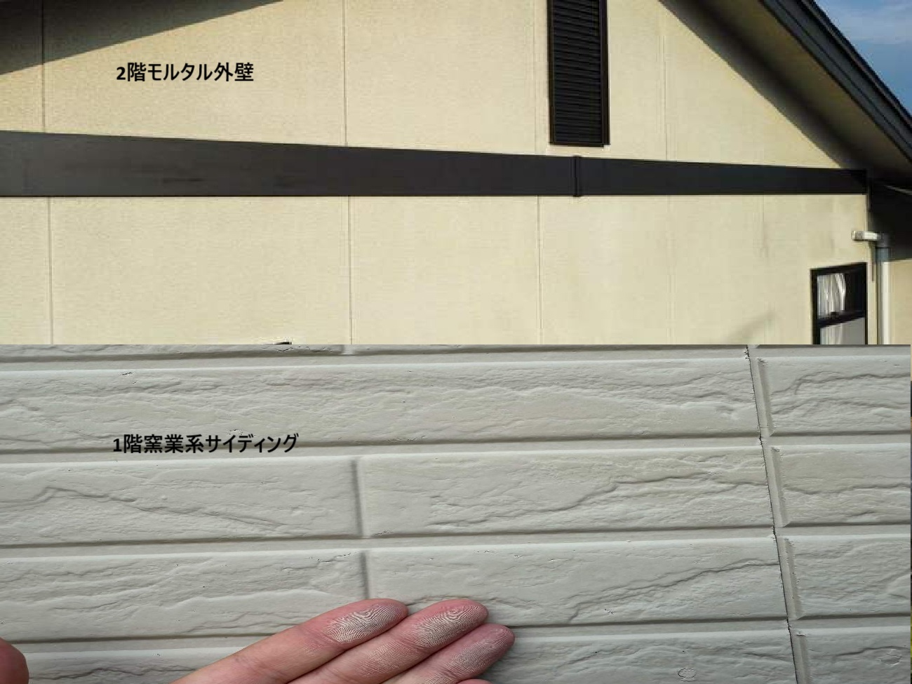 1階の外壁は窯業系サイディングになり手で触ると白く付くチョーキング現象が出ております。