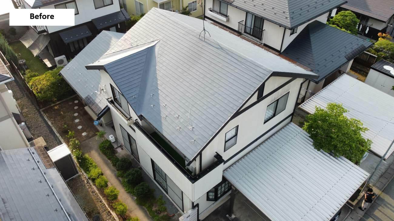 屋根はさび止めをしっかり行い、上塗りは雨風や紫外線から建物を保護する力が強いシリコン樹脂塗装をしました!
