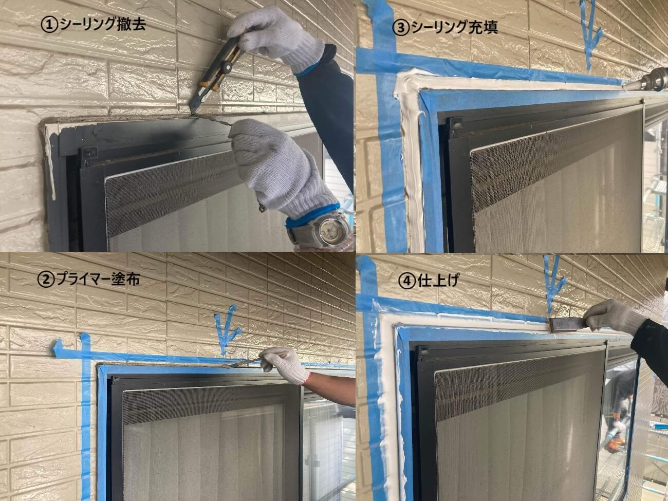 先ずはサッシ廻りなどシーリングを撤去します。その後はプライマーを塗布し、シーリング材の剥がれを防ぎ、防水性や耐久性を向上させます。