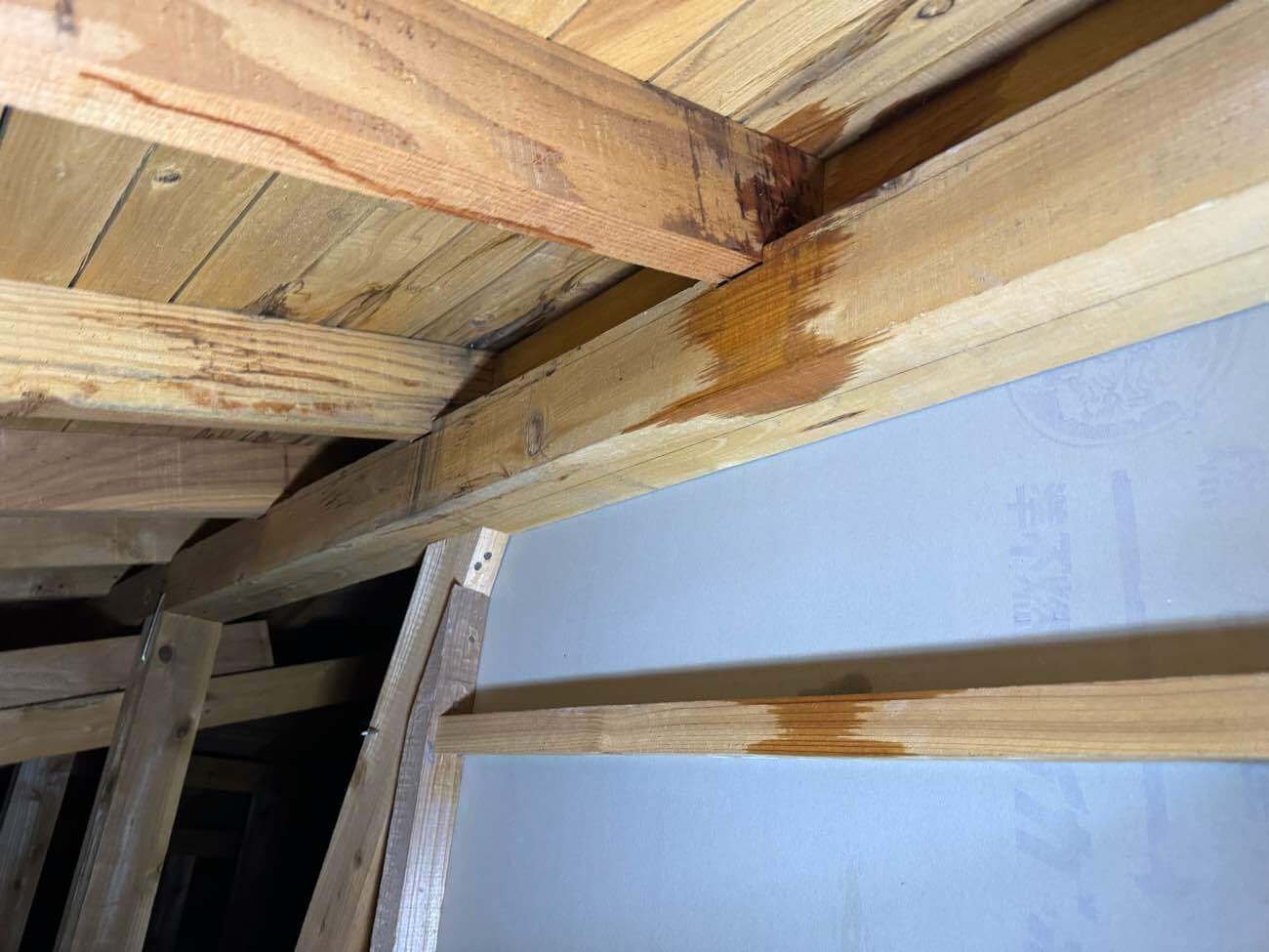 調査の結果、浸入口はトップライトと屋根材の取り合いに、雨風が吹き込んで入っていることがわかりました!