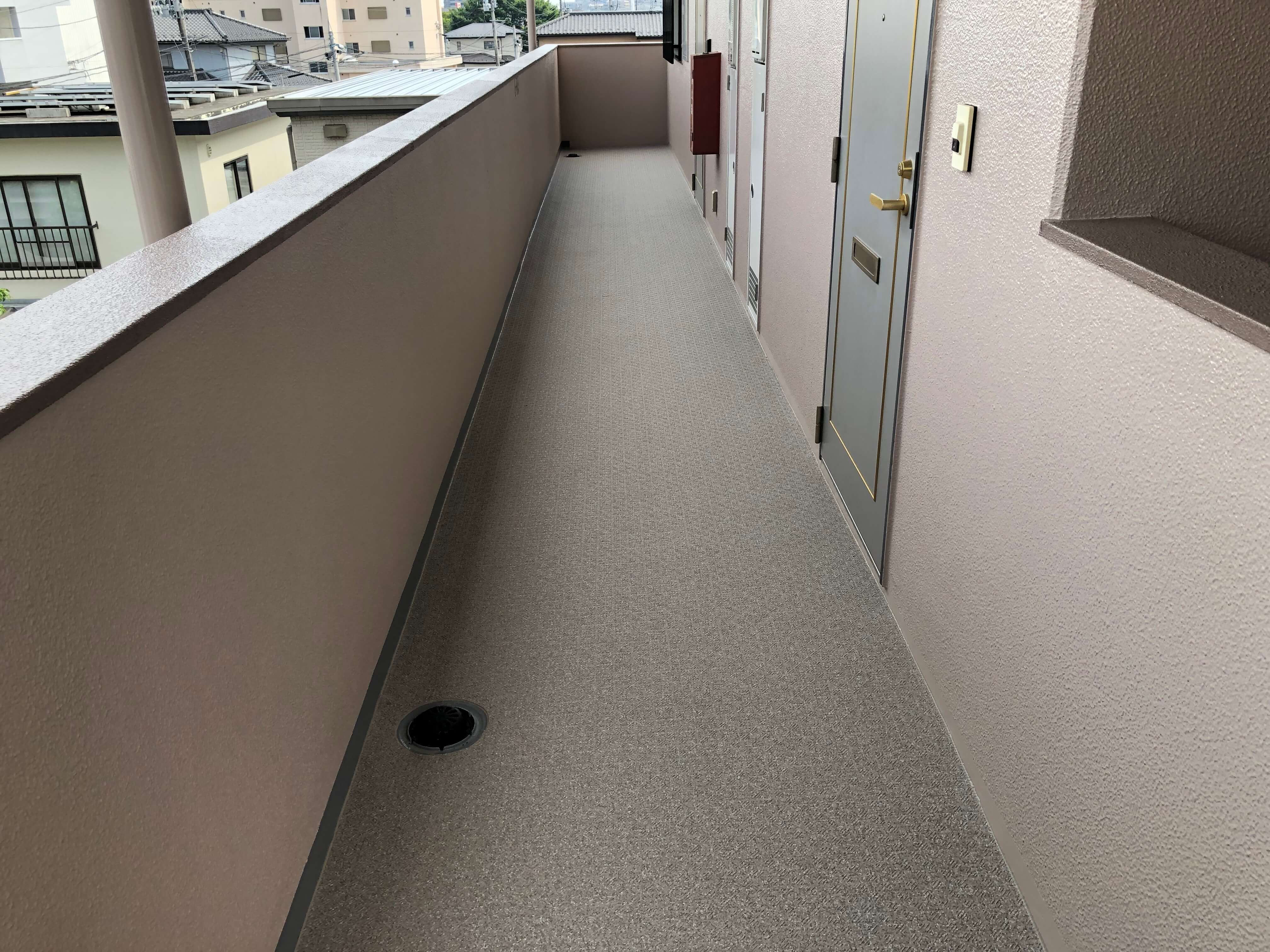 廊下側溝もウレタン防水をして床長尺シート張り。