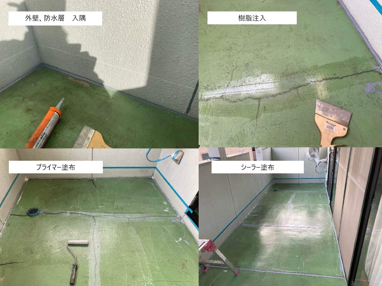 防水層はシーリングの打ち替えと、ウレタン塗膜防水にて修繕を行います。