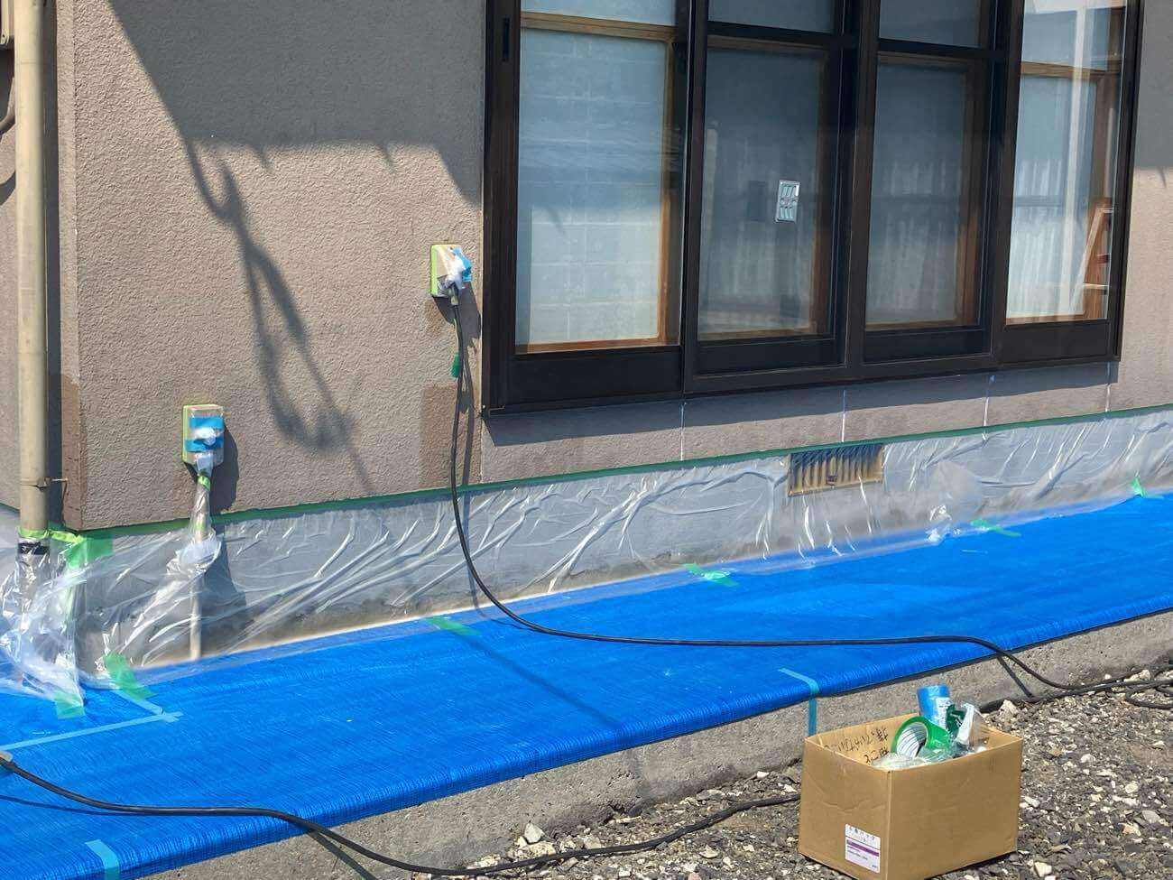 作業前には養生もしっかりと行い、塗料の飛散や汚れを防ぎ、美しい仕上がりにします!
