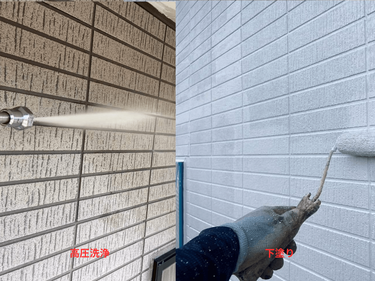 高圧洗浄→下塗り→中塗→上塗り→完了