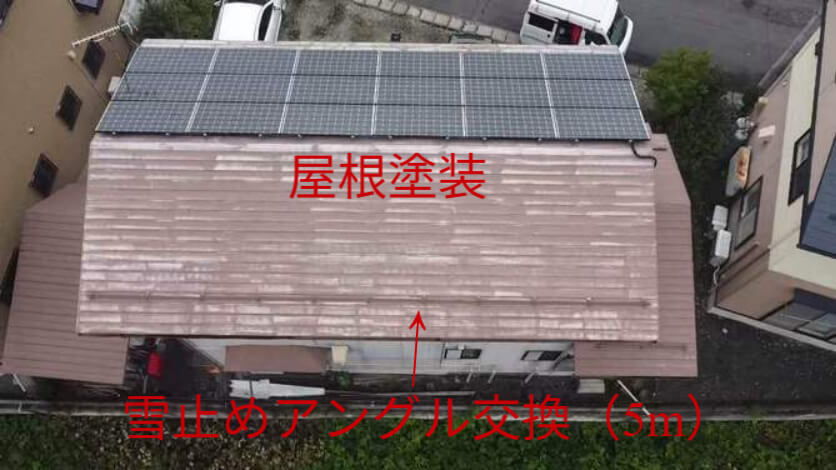また、雪止めアングルには錆も見られ、下屋根の方も劣化、変色している箇所が見られました。