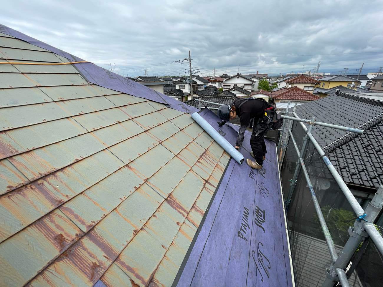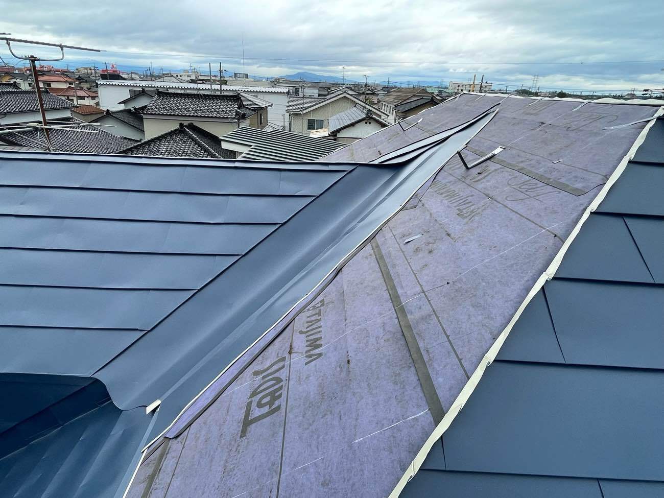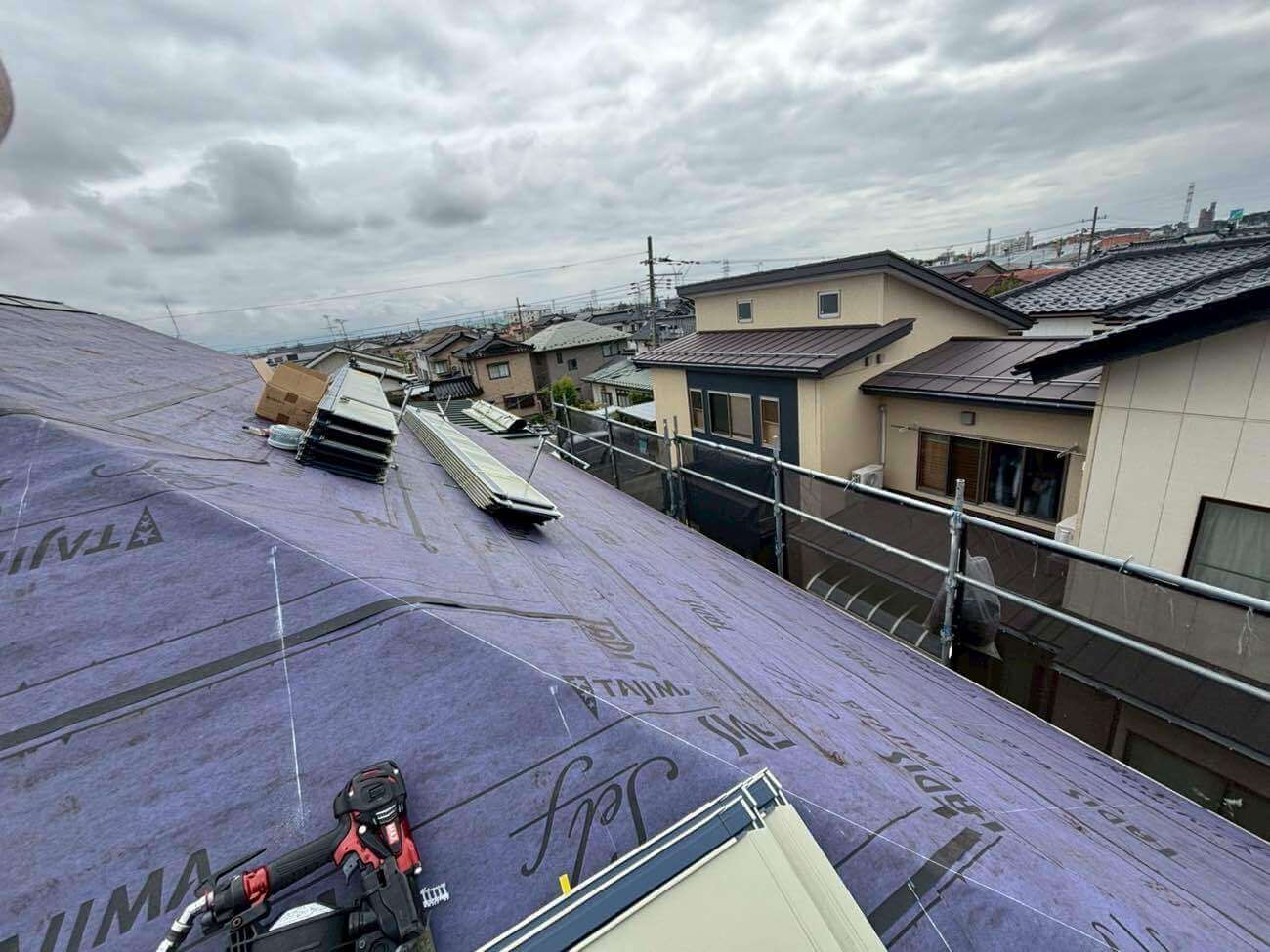 非常に錆びにくい性質を持つガルバリウム鋼板を葺いていきます!