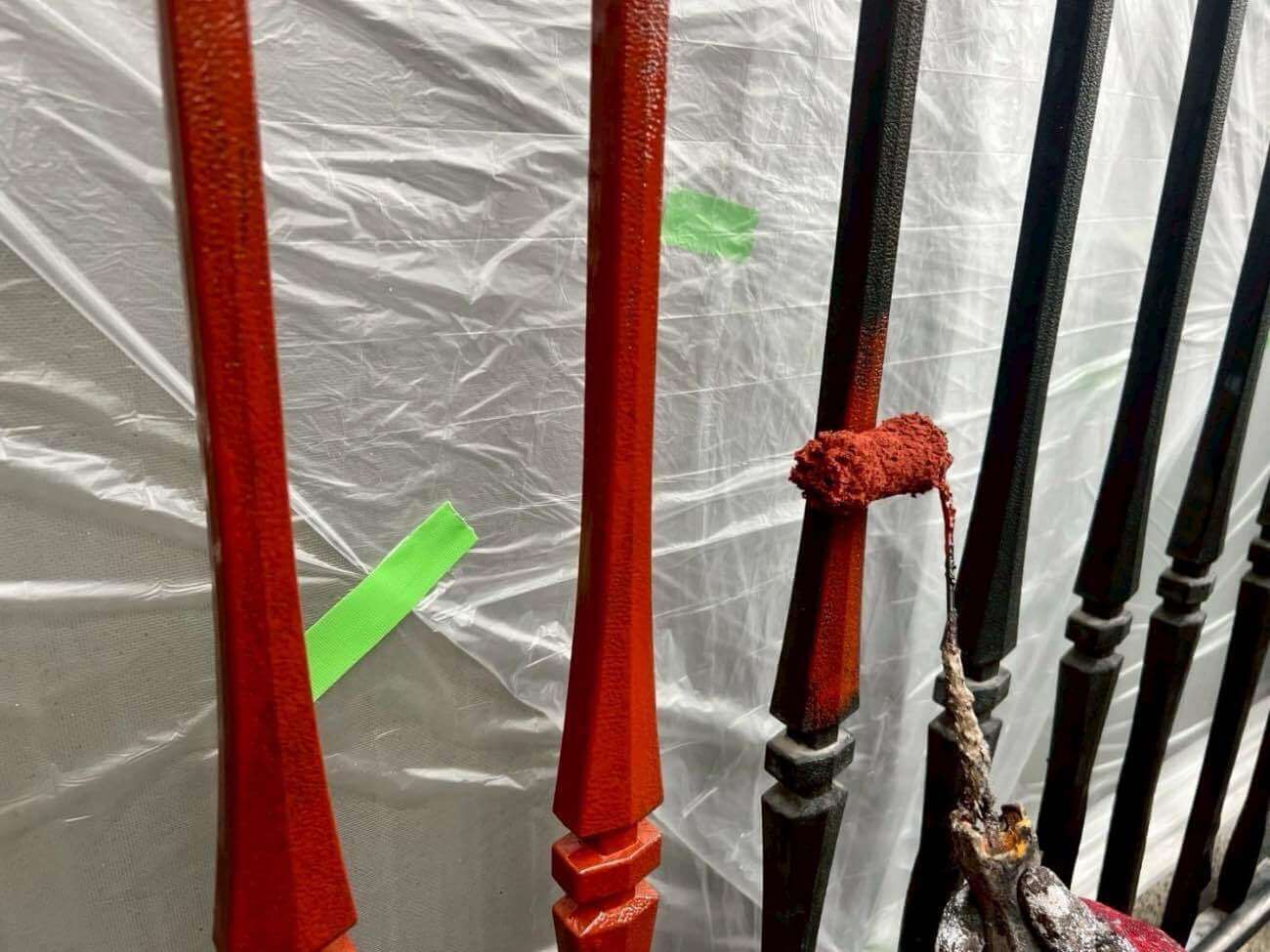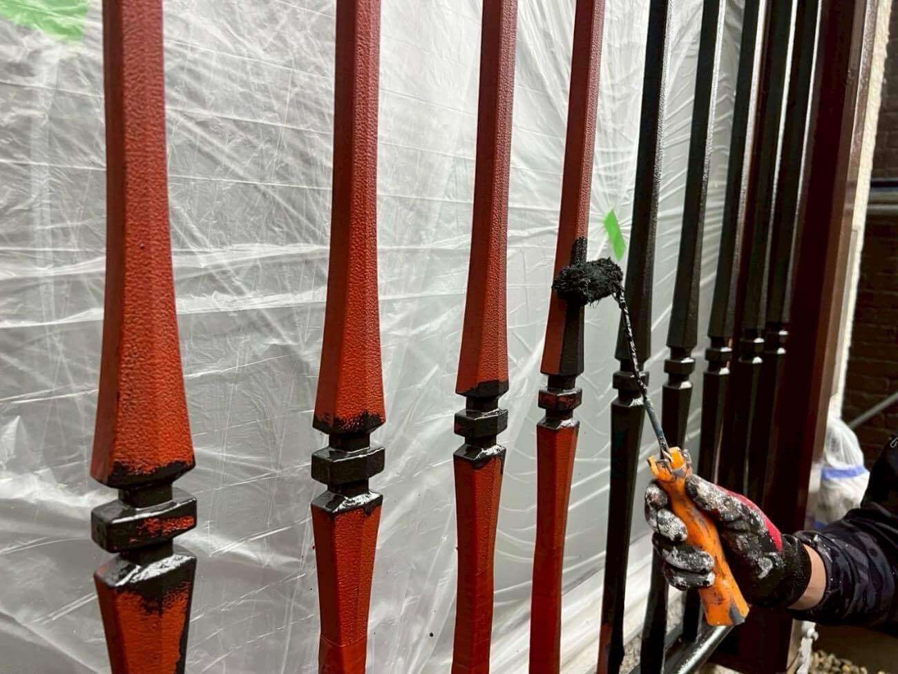 破風板塗装、雨樋塗装、手摺塗装も錆止めを塗った後に上塗りします!