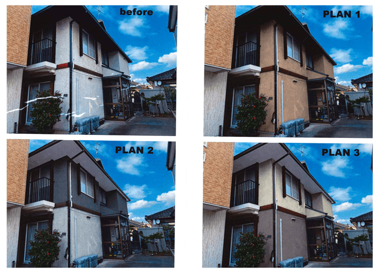 当店では仕上がりイメージを事前ご確認いただけるように数パターンのカラーシュミレーションをご用意いたしますので、周囲の景観に合わせたり自分好みの色にしてみたり!